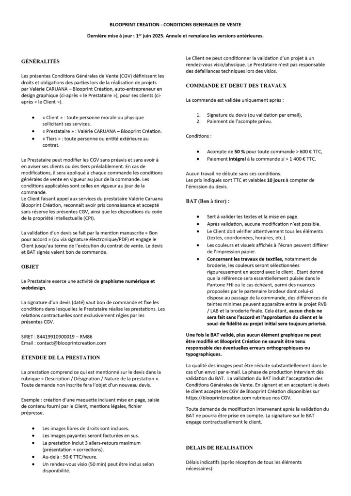L’édition et la direction de la publication du site https://blooprintcreation.com/ est assurée par Valerie Caruana, domicilié 86190 Vouillé.