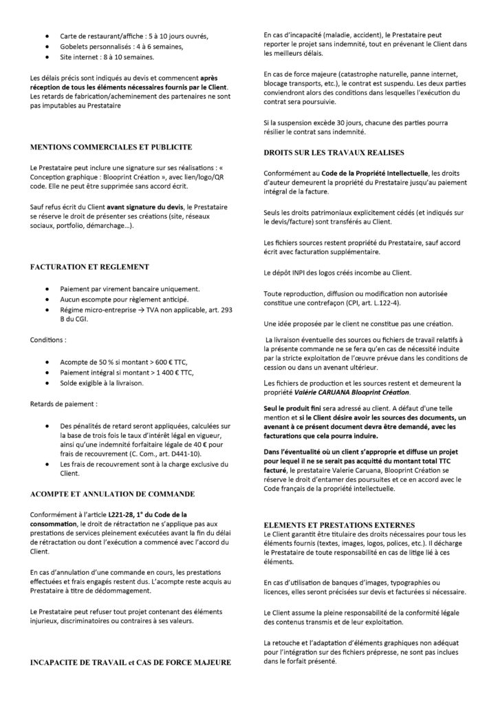 Valérie Caruana, Blooprint Création Siret 844199109 00019 – RM86.